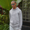 Felpa con cappuccio foderato in jersey e cerniera, struttura con cuciture laterali, nastro parasudore a spina di pesce, mezzaluna in single Jersey sulla schiena per una facile personalizzazione.