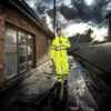 Giacca antivento, impermeabile e traspirante. Caratterizzato da cuciture termo nastrate, zip impermeabilizzate, tasche interne, cappuccio, polsini e vita regolabili. Inserti rifrangenti. Taglie disponibili dalla XS alla 4XL.