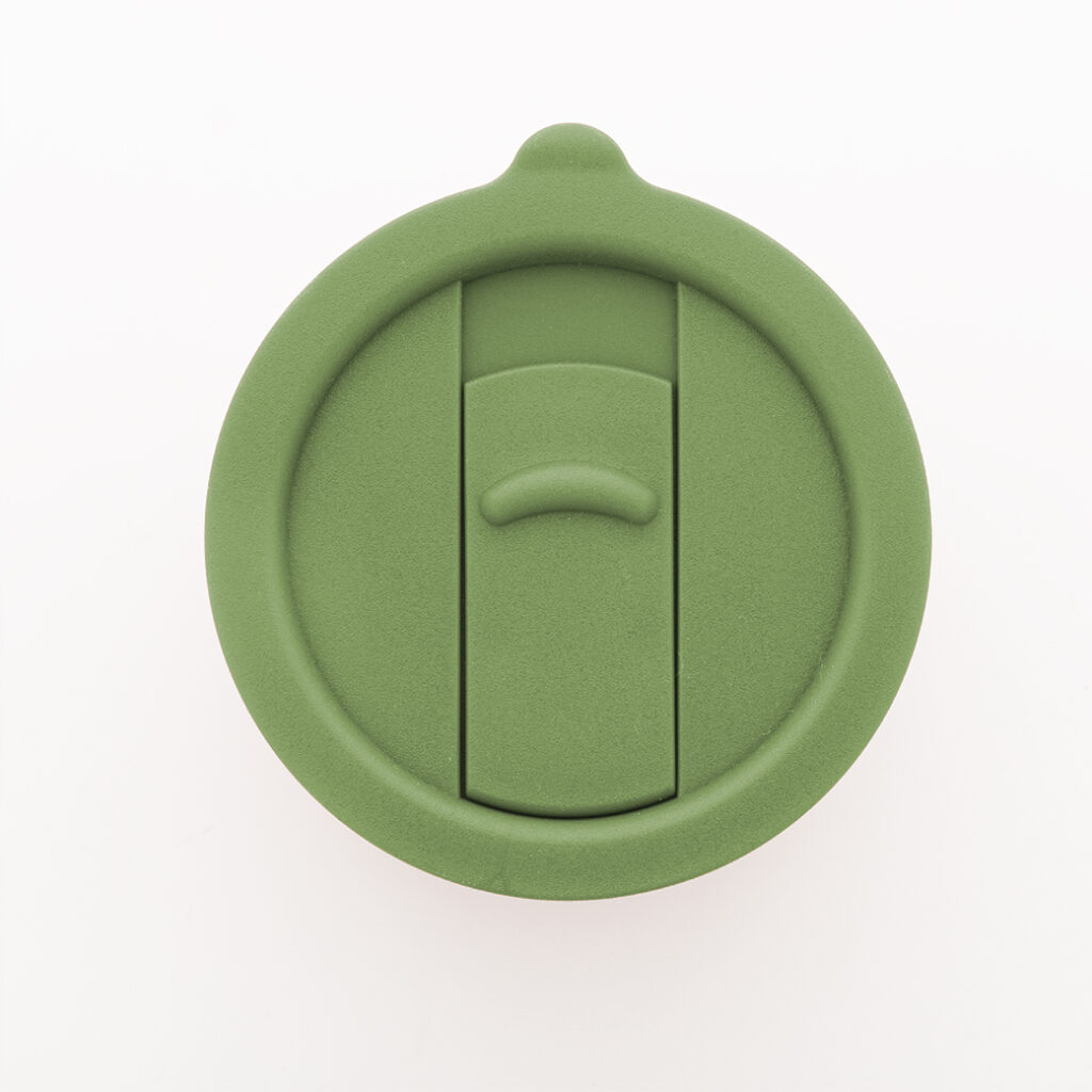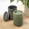 Tazza d’asporto da 300ml. in ceramica rivestita con silicone e coperchio in plastica PP.